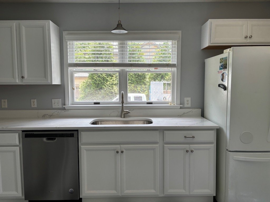 Open floor plan with kitchen and family room. Recently renovated Kitchen with new counters, floor, cabinets. Four nice size bedrooms. Fenced in yard for small dog. Ample parking for 3-4 cars.