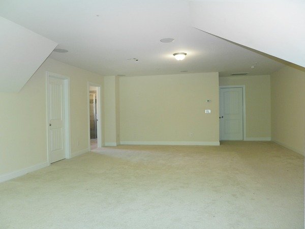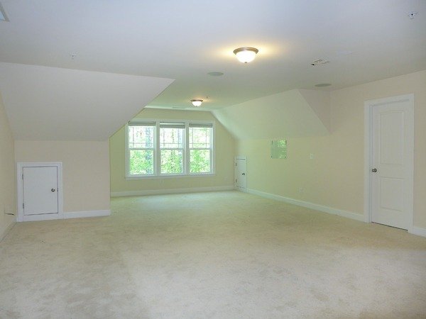 The bedrooms are on the upper two levels, all with carpet. Three bedrooms are on the second level. The master bedroom features a trey ceiling with a fan, plantation shutters, and an en suite master bathroom. The master bathroom has a dual sink vanity, a soaker tub, a separate shower with tile surround, and a large walk in closet. A second bathroom and the laundry room are on this level. The laundry room has built-in cabinets, a closet, and washer-dryer hook-ups. The fourth bedroom with a walk-in closet and the third bathroom are on the third level. This spacious room could be used as a bonus. The bathroom has a tile shower. There access to attic storage from this level of the home. All of the bathrooms and the laundry room have tile flooring.