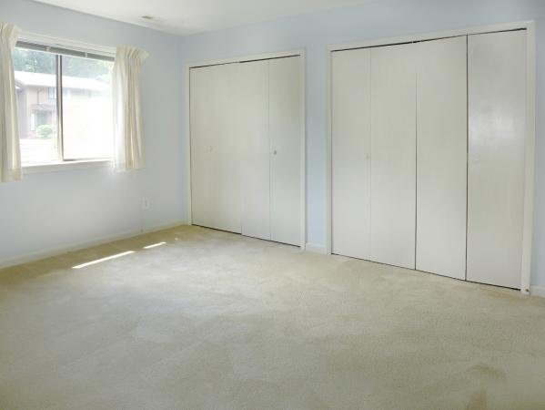 Both bedrooms have carpet. The master bedroom has a walk-in closet and a private bathroom with a shower. The second bedroom has two closets. There is a second full bathroom.