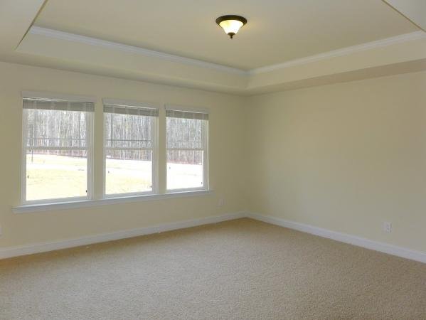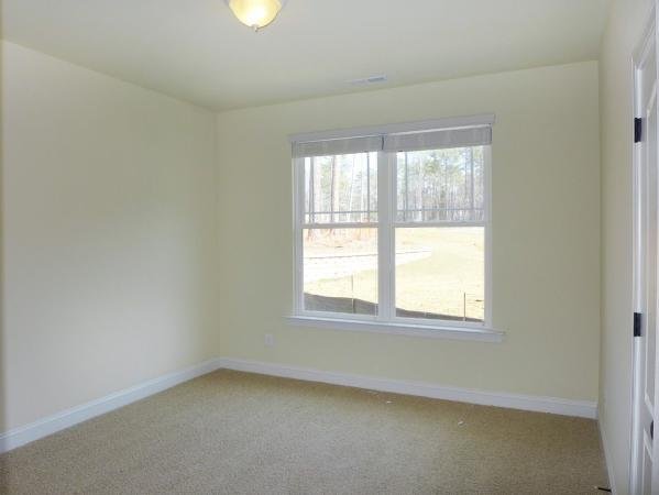 This home has a bedroom and full bathroom on the main level. There is carpet in the bedroom and tile floors in the bathroom. The bedroom and bathroom are located off of the foyer to the one car garage.