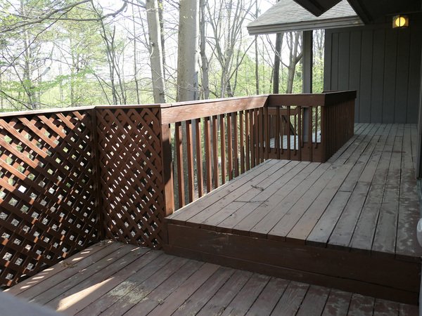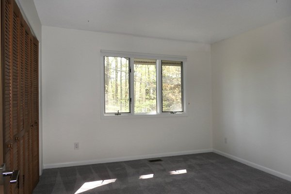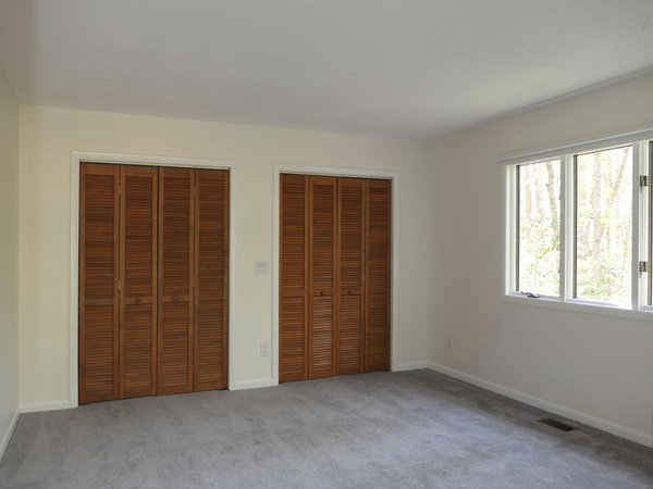The remaining bedrooms and second full bathroom are of the foyer from the kitchen. Both of these bedrooms have carpet and wall length double door closets. One of these bedrooms has a slider to the rear deck and backyard. The second full bathroom has a separate vanity space, tile flooring, a skylight, and a tile surround tub-shower.