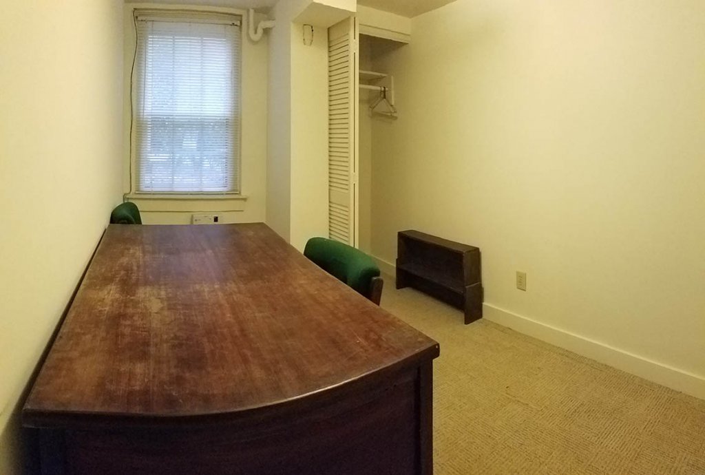 The property sits on 1/2 acre of gardens, brick walks and stone hearth. You can walk/bike/bus (free bus) to campus, parking with street permit (300 yds around street corner). We are an empty nest academic couple living above. Sorry, we allow no pet or smoking, and no loud music/TV. The apartment has a liv/dining room, kitchenette, bedroom, study, and bathroom, no access to rest of house (no shared living space). There is a window in each room (except for bathroom) looking out into greenery. Rental rate of $790/month includes water, gas, and electricity [your own control of central AC] (you pay for your own phone and internet). Yearly lease. No sublet.
