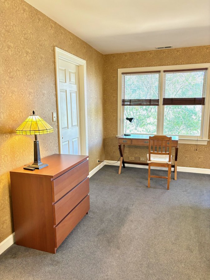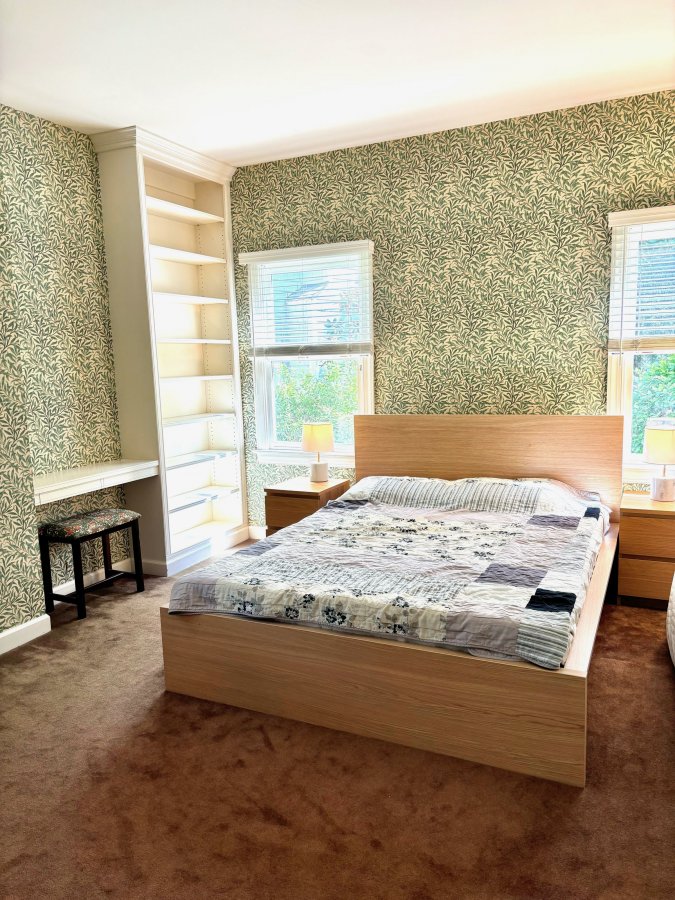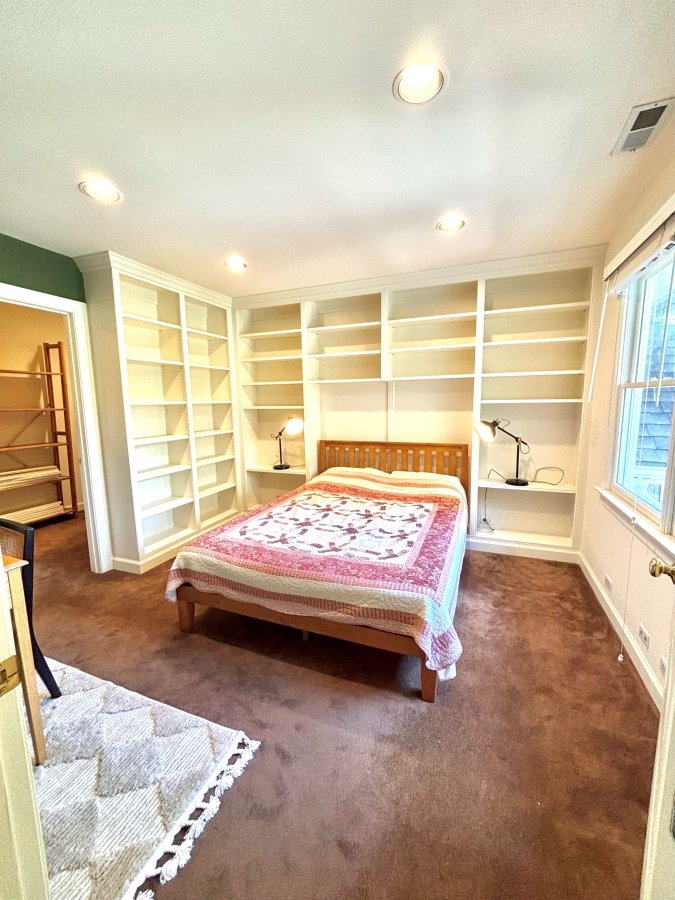 Bedrooms are LARGE and come furnished with a queen bed, mattress, nightstands, desk, and chair! Every room has beautiful custom inset bookshelves!