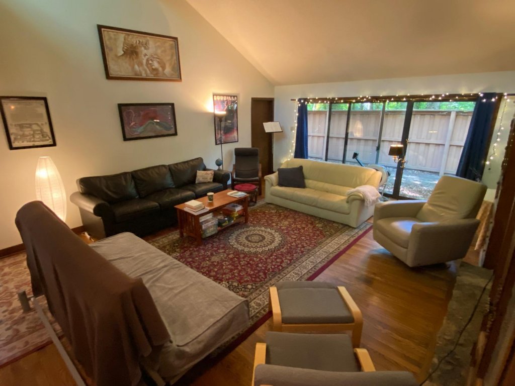 Large, leafy yard, plenty of parking. Located between Meritt’s Pasture and the Botanical Garden, with easy access to the Hospital, Kenan-Flagler Business School, and the Dean Dome. Great space for hosting and enjoying beautiful spring weather!