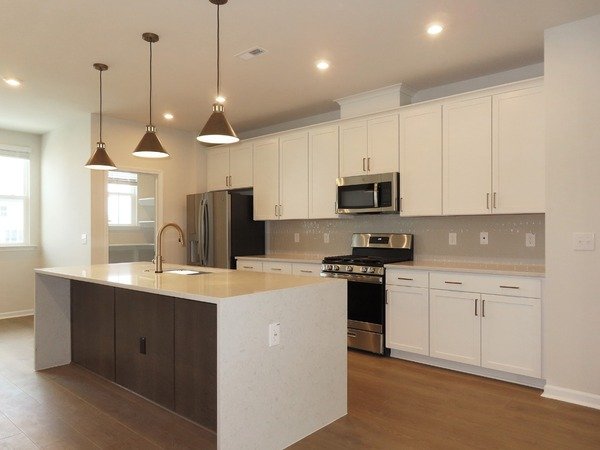 This newly built, three-story townhouse is in the Twinleaf Townes neighborhood, within 15 minutes of Franklin Street, UNC, Duke, RTP, and next to I40. There is a community fire pit a few doors down. The home offers a traditional floor plan with the common areas on the main level, the bedrooms on the third level and an additional flex room on the first level.