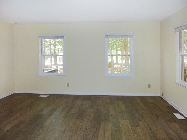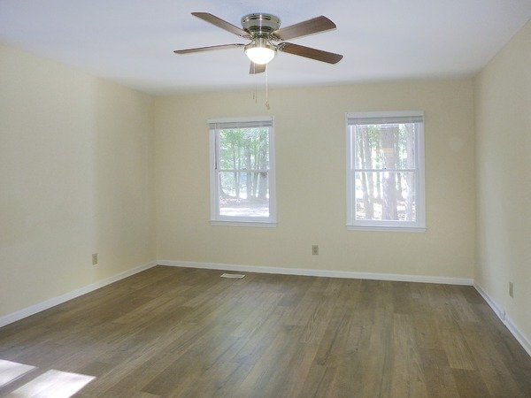 The versatile floor plan includes the living room, family or dining room, kitchen with breakfast area, master bedroom, and utility room are all on the main level of the home. The large living room could easily be furnished as a combined living and dining space. This room has hardwood style plank flooring.