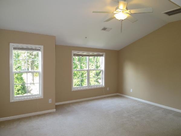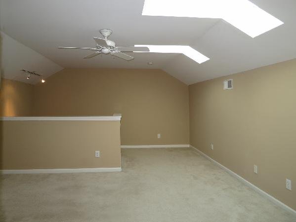 The bonus room is on the third level of the townhome. This room has a ceiling fan and two skylights.