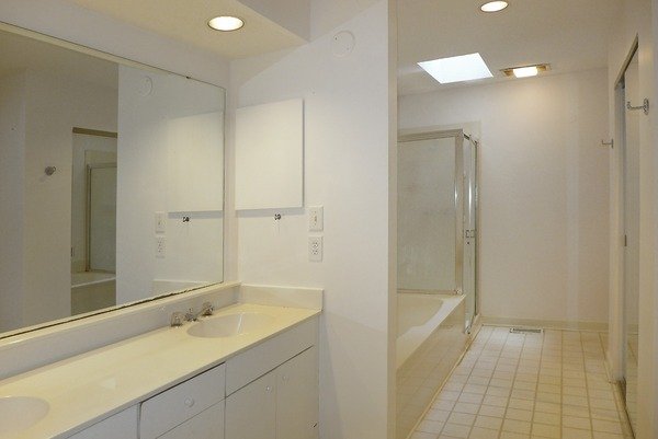 The master suite is located on the main level and includes a private bathroom. This room has carpet. The master bathroom has a skylight, a separate tub and shower, dual sink vanity, a walk in closet and an additional closet with a mirrored slider. There is a large under stairs storage closet on the main level.
